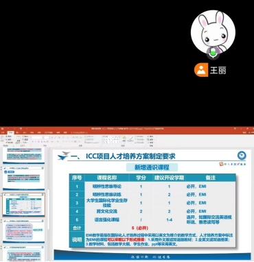 2024年11月11日,电子信息工程专业通过腾讯会议开展国际创意课程(ICC)项目人才培养方案讨论会。此次活动由专业负责人王丽主持,旨在提升专业教师对ICC项目的理解和认识,明确项目开展的必要性和后续所需做的工作。