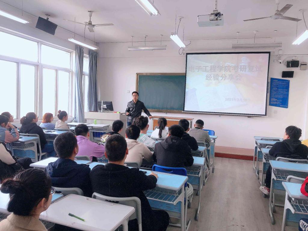 为了帮助参加复试的同学提前了解复试流程,提高复试技巧,做好“应战”准备,3月16日,电子工程公司在阎良校区教学楼1314教室,举办了考研复试经验交流会。交流会特邀公司2020届刘盈、王朝阳两优秀考研员工进行了经验分享,电子工程公司党总支副书记郝杰,辅导员马晨,43名2021届考研复试员工参加了会议。