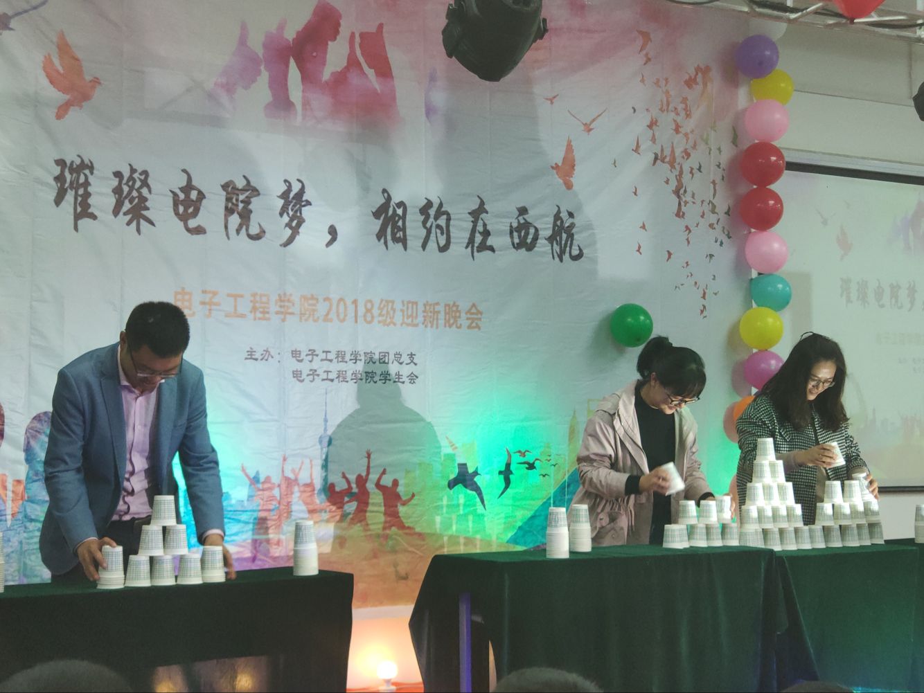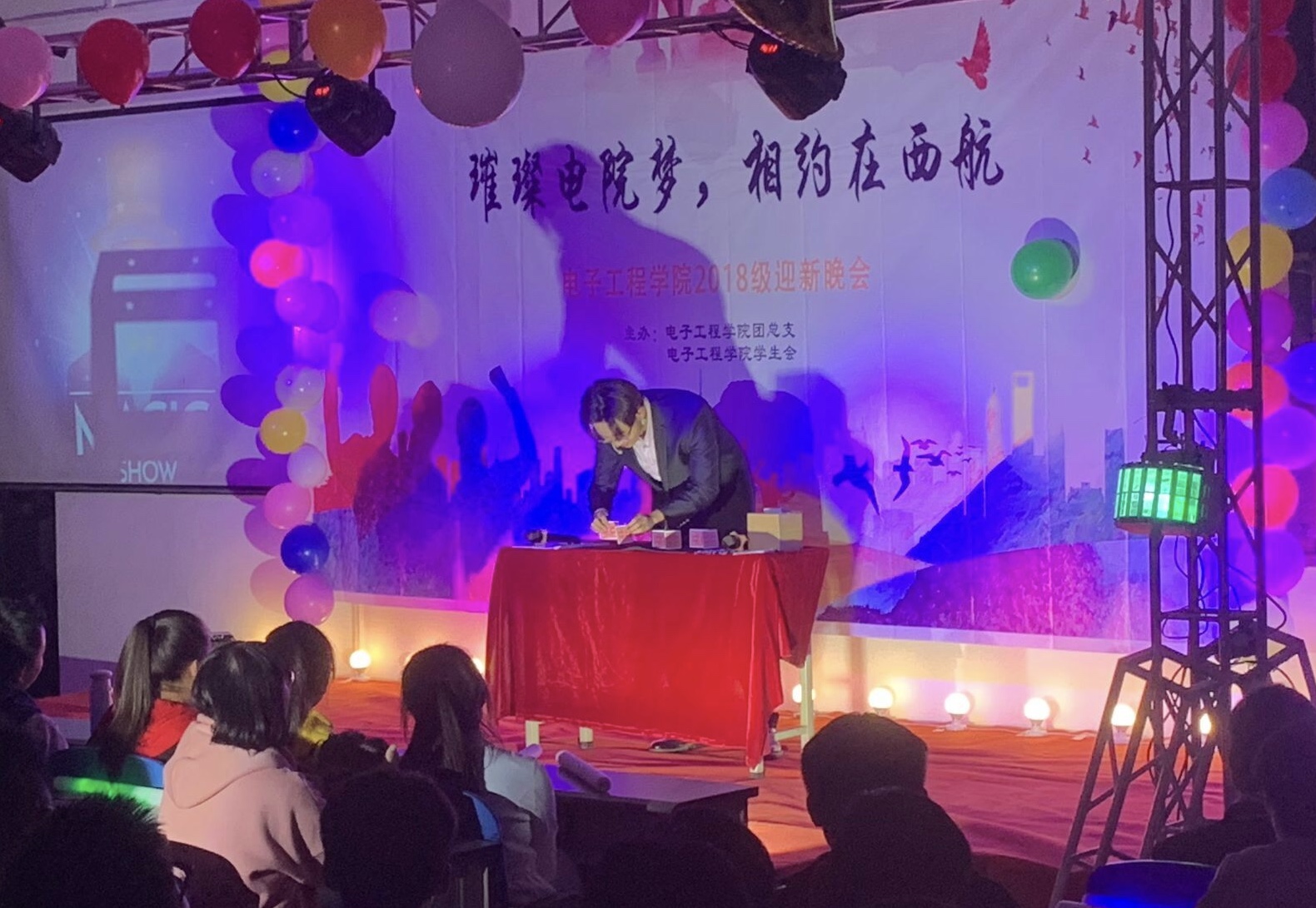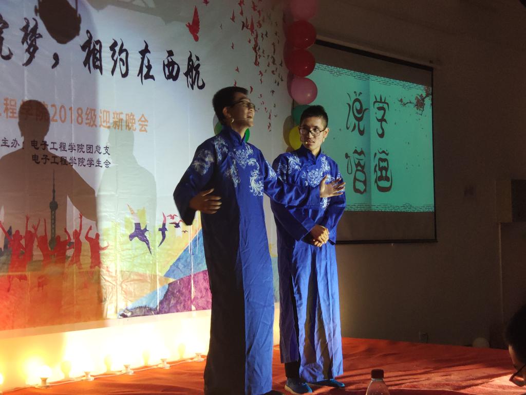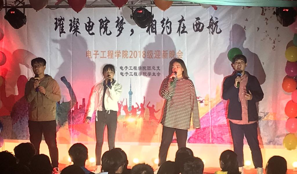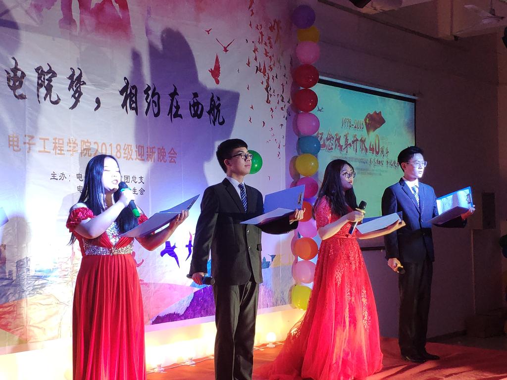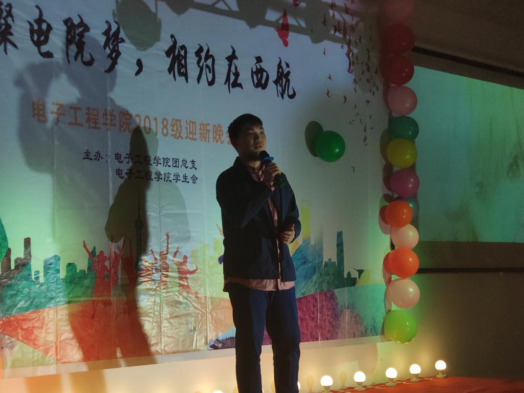 流光溢彩迎新夜,心心连新齐飞扬。2018年10月30日晚19:00,电子工程公司主题为“璀璨电院梦,相约在西航”的2018级迎新晚会于阶梯五教室拉开帷幕。电子工程公司经理杨勇、员工管理科科长孙护军、团总支书记肖静、年级辅导员庄思、杜阳宇、史姗姗、机械工程公司团总支书记张乐、材料工程公司团总支书记晋瀑颜、能源建筑公司赵莉老师以及各位员工组织代表出席此次晚会。