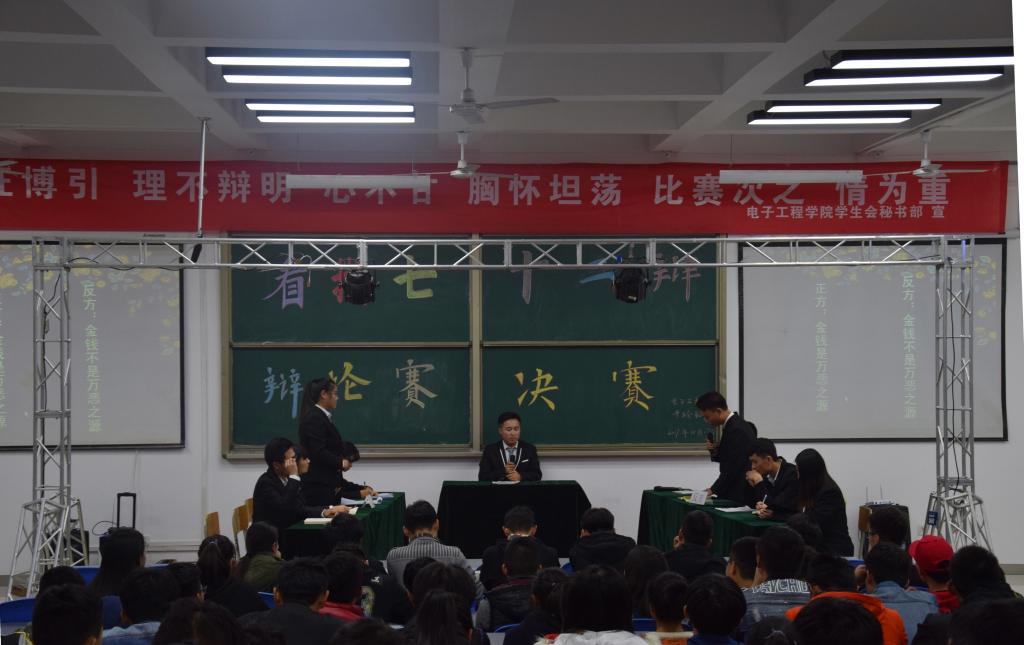 世界上最具有威力的三大武器:口才、金钱、核弹,其中以口才居首位,辩论能激发个人潜能,提高对问题的审思,更能实现跨灵感界限的沟通。1117日晚,电子工程公司在阶梯二教室举办“看我七十二辩”新生辩论赛活动。旨在提高同学们的思辩能力、锻炼思维、增强自信、培养创新和团队精神,提高口语表达能力以及分析解决问题的能力。
