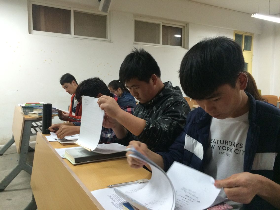 同前一次相同,本次检查从各班级随机抽取15人,笔记本送交学习部检查,检查之后进行评分。学习部的同学秉承认真求实的工作态度,逐一检查每一本笔记,经过一番认真细心的翻阅,大一年级的学习笔记检查工作于1930分完成,大二大三年级的学习笔记的检查也在八点前顺利完成。