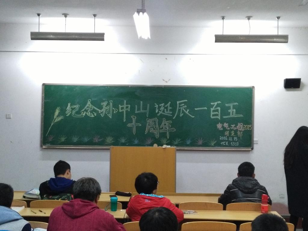 一百五十年前,中国最伟大的革命人孙中山诞生了,为纪念这个伟大的时刻,电子工程公司团总支组织部展开了以“纪念孙中山先生诞辰150周年”为主题的团会活动。本次活动由各班团支书主持召开,组织部通过出勤人数、教室卫生以及板报团会内容进行评分。