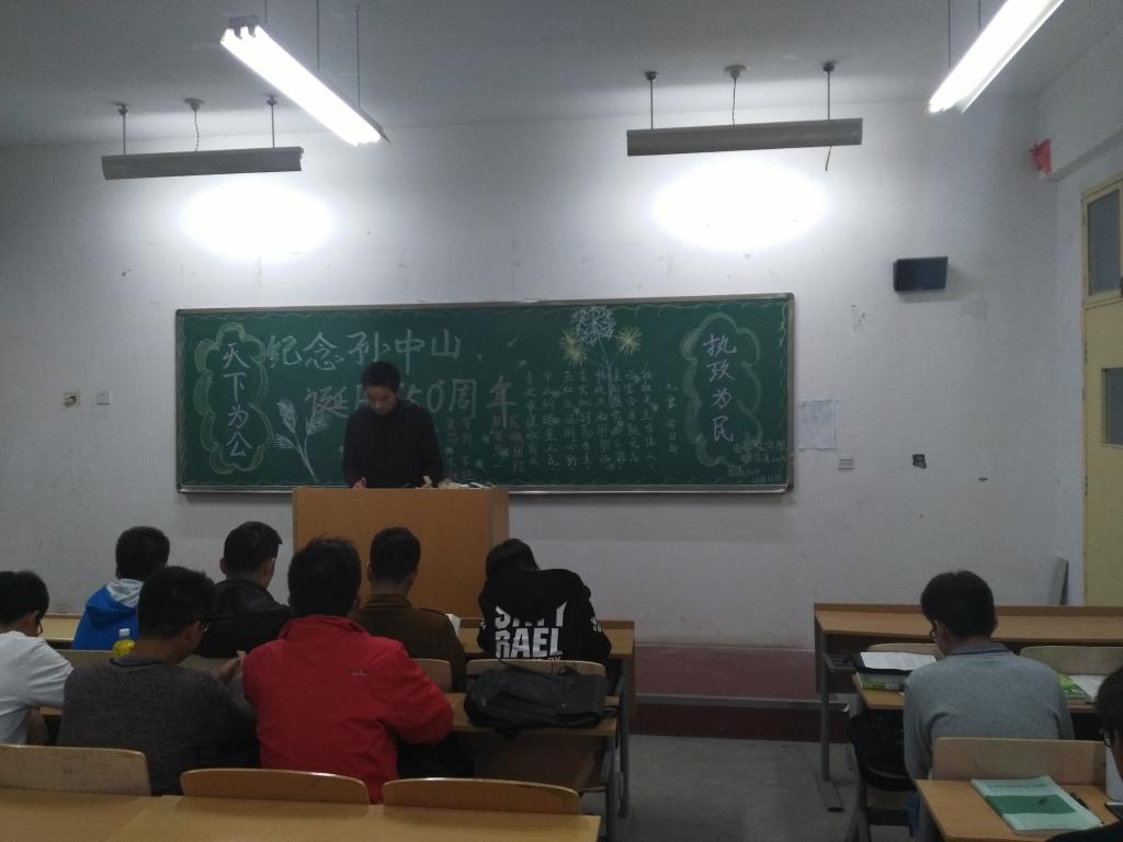 对于本次活动各班级严肃认真,团会形式多种多样,但是每个班级都发自内心的表达出自己对孙中山先生崇高的敬意。孙中山先生的事迹感染打动了每一位同学,演讲的员工声情并茂,将孙中山先生当年呕心沥血,奔走呼号的身影又一次带到我们的眼前。台下同学们严肃认真,瞻仰孙中山的风采。在各班级积极的筹办下,本次团会活动圆满结束。