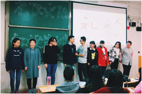 乔梦瑶向大家讲解了自己对礼仪的认知,以及如何合理的处理人际交往关系,她从自身出发,讲了许多自己身边有关礼仪交际有关事例,通过对比自身的感受来告诉女生应该如何礼貌的与他人交往,并强调在关注自身外在美的同时,应重视提升自己的内在美。尹栋以其开朗的性格和独特的演讲方式,赢得了再坐同学们的阵阵掌声。他主要讲了女生交际时的坐姿,站姿,以及如何与人握手拥抱才能彰显温文尔雅。在演讲过程中尹栋亲自示范动作,与台下女生和嘉宾进行互动,在与员工的互动中将现场气氛调动的十分热烈。在玩乐与欢笑声中,礼仪知识在不知不觉中传授。女工部部长刘攀子为本次活动进行了总结,并送上美好的期愿。
