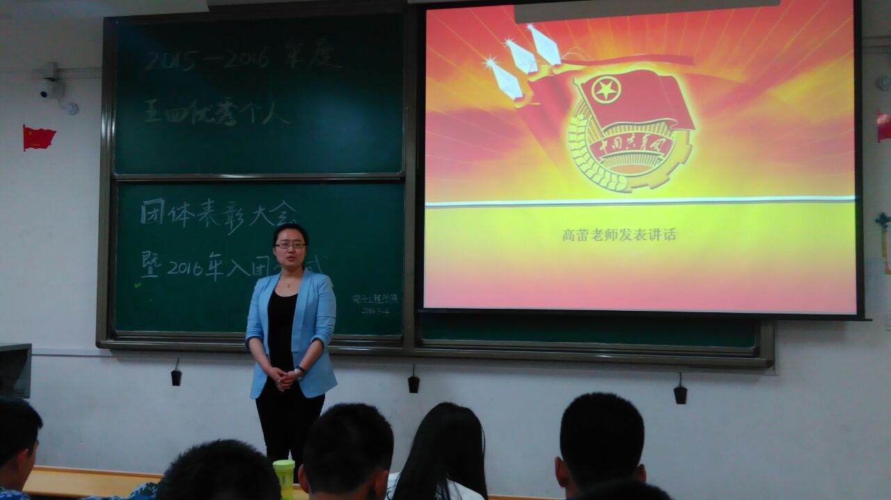 最后,团总支书记高蕾老师发言,对新团员的加入表示热烈的祝贺,并号召全体新团员努力学习、积极工作、严格要求,用青春谱写人生华丽的乐章。