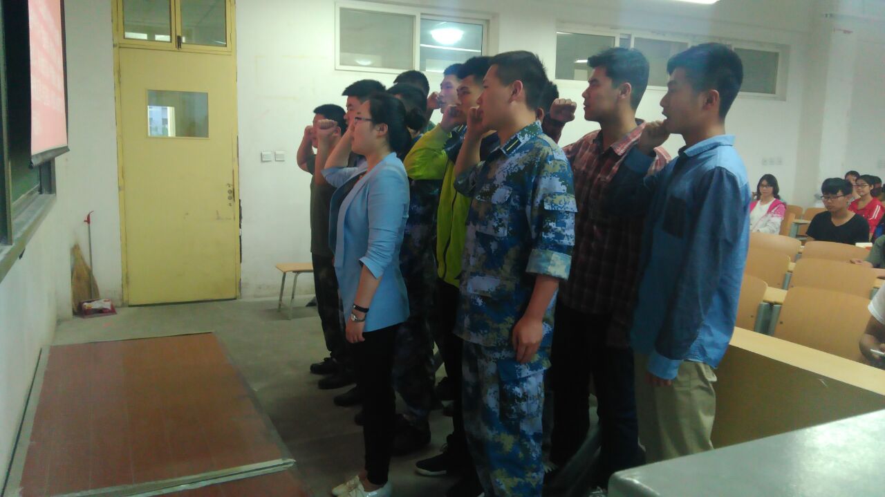 伴着激昂的团歌声,所有新团员满怀欣喜,期待加入团组织那神圣的一刻。面对鲜艳的团旗,全体新团员集体庄严宣誓。接着,由优秀团员标兵叶哲远和优秀志愿者代表讲话,他们分别讲到:鱼与熊掌不可兼得,但我们要学会利用空闲的时间,在学习和工作中取得平衡,作为一名优秀的团成员,不仅要学习优秀,且在品德修行方面更要做到极致。