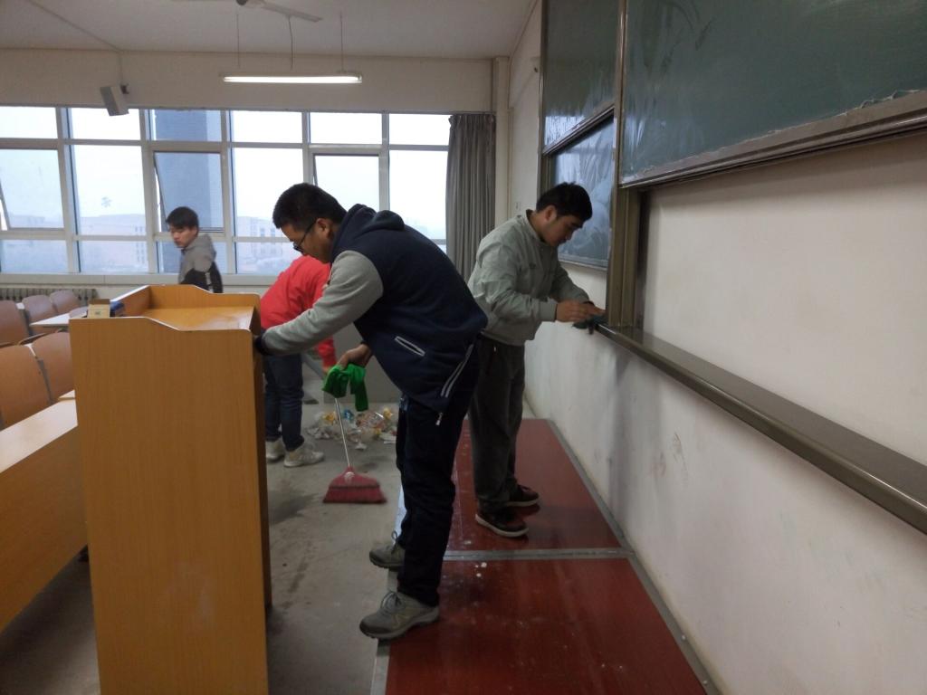 316日,自动化专业的35名同学对13201322132413261336五个公共教室进行了打扫,经过员工的辛勤打扫,教室恢复了往日的明亮和干净整洁。