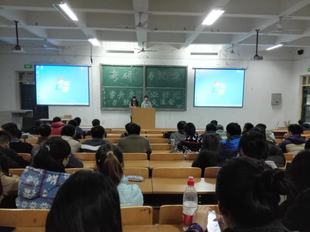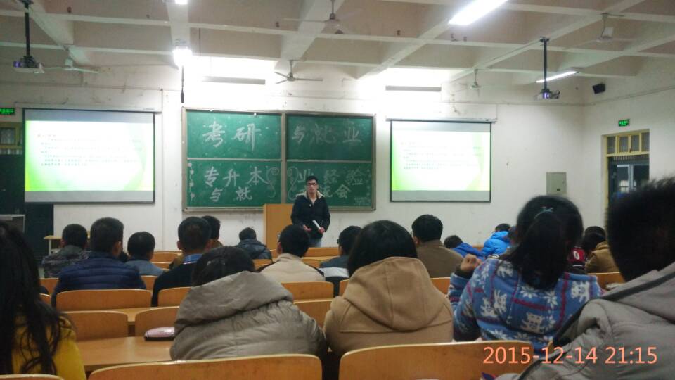 12月14日晚七点,在公司第五阶梯教室进行了一场针对公司大二员工的关于未来考研、就业以及专升本的经验交流会。本次活动由公司员工会秘书部主办,参会人员主要为公司大二学生。活动在部长陈敬霄简单致辞后正式开始。
