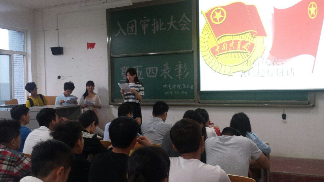 以“学习先辈勿忘国耻,坚定信念逐梦西航”为主题,以“宣誓言﹒迎青春”团员入团仪式为形式的电气公司团总支纪念“五四”运动96周年暨抗日战争世界反法西斯战 争胜利70周年五月“青春主题”活动月于5月4日晚7点在阎教1336教室隆重开幕。2015年全体新团员参加本次大会,公司团总支书记、副书记和员工管理科全体老师出席本次开幕活动。