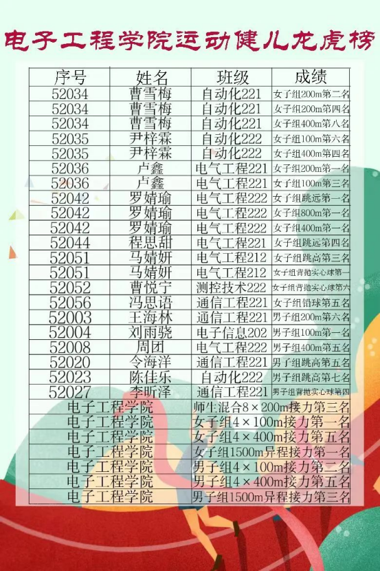 最后,让我们一览本届运动会公司师生龙虎榜,感受电院运动健儿的荣耀,共同期待下一届运动会有更加优异的表现!