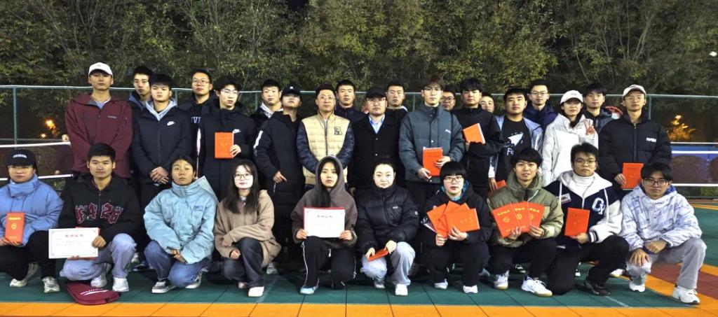 他们用激情与汗水,为电子工程公司全体师生呈现了一场精彩绝伦的羽毛球盛宴。决赛过程中,选手们展现出了极高的竞技水平和顽强的拼搏精神。每一场比赛都充满了悬念和竞争,无论是单打还是双打,同学们都全力以赴,团结一致。最后,辅导员焦登宁老师为全体一等奖同学颁奖,许梁老师为二等奖和三等奖同学颁奖。