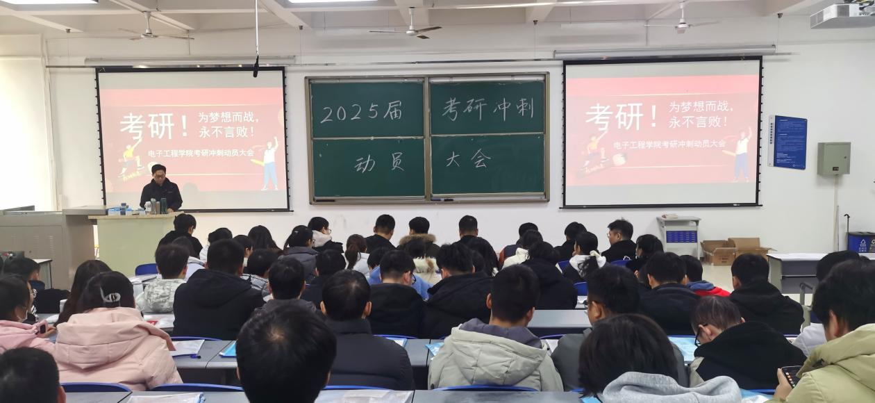 为了给即将踏上研究生考试征程的学子们加油鼓劲,帮助他们缓解备考压力,增强迎考信心,12月13日,电子工程公司在阶梯四教室举办“研”途相伴,温暖随行考研冲刺动员会。70余名2025届考研员工代表参加了活动,辅导员高蕾,焦登宁,谭泽楷和赵嘉帅出席活动。