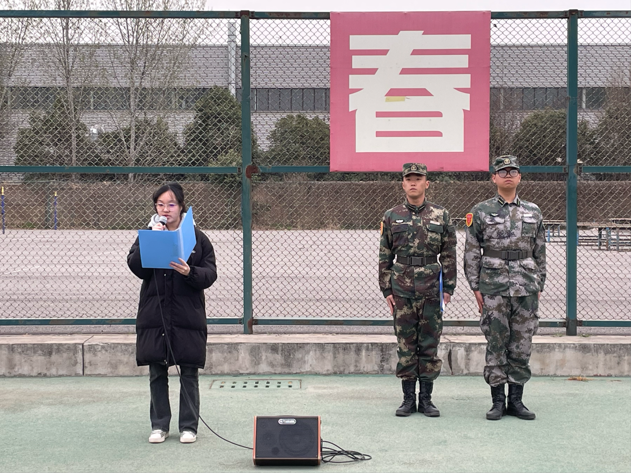 晨光初破晓,仪式现场已肃穆俨然。国旗护卫队队员身着迷彩制服,以劈波斩浪之势列队而出,雪白的指挥刀划破晨雾,在朝阳下折射出耀眼银光。护旗方阵以正步礼昂首行进,奏响铿锵的时代强音。当鲜红的旗帜掠过旗杆顶端,升旗手振臂扬旗的刹那,五星红旗化作一团跳动的火焰,在春风中舒展成最美的中国红。全场预备党员佩戴党徽,以标准跨立姿势向国旗行注目礼。他们凝视着旗帜上的金色五星,目光穿过历史的烽烟,触摸到嘉兴南湖的红船,感受到长征路上的篝火,见证着天安门城楼上的历史性宣告。此刻化作具象化的精神图腾,在预备党员心田播撒下信仰的种子。