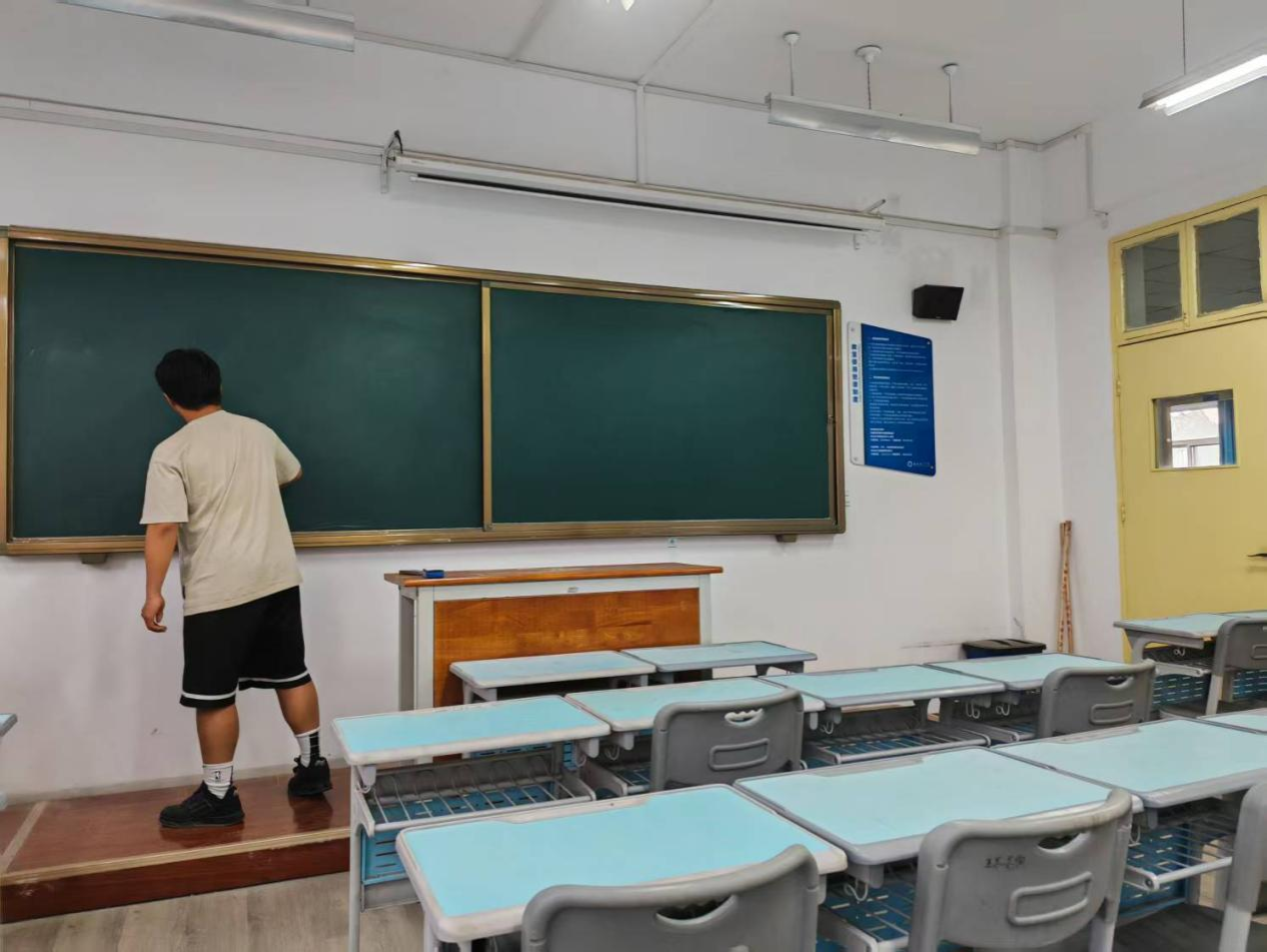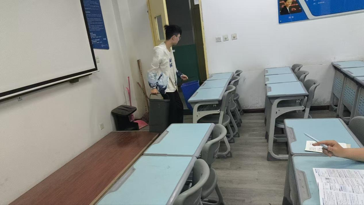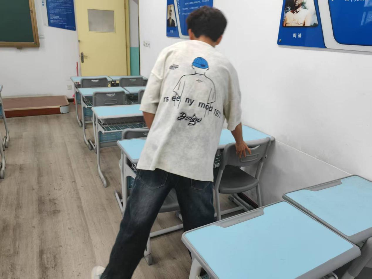 每天晚自习结束后,班级值日生都会遵循“卫生责任教室”的值日标准进行清洁工作。从地面清洁、窗台除尘到桌椅归位,每个细节都经得起检查,确保不留卫生死角。让教室不仅整洁有序,更充满了班级特色。