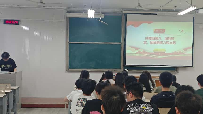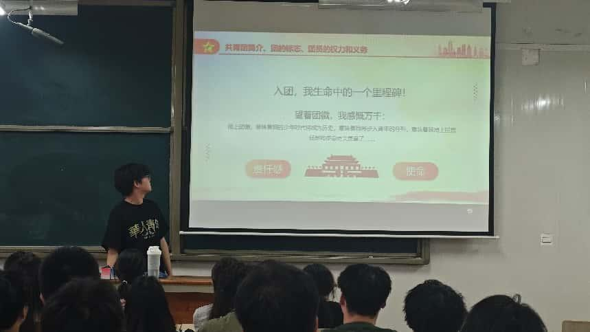 介绍尾声,陈瑞辰饱含深情地说:“加入共青团,是青春的新起点。希望大家牢记团的章程,履行团员义务,在今后的日子里,用实际行动为团旗增光添彩!”台下的新团员们认真聆听,眼中满是对共青团的向往与加入组织的自豪。