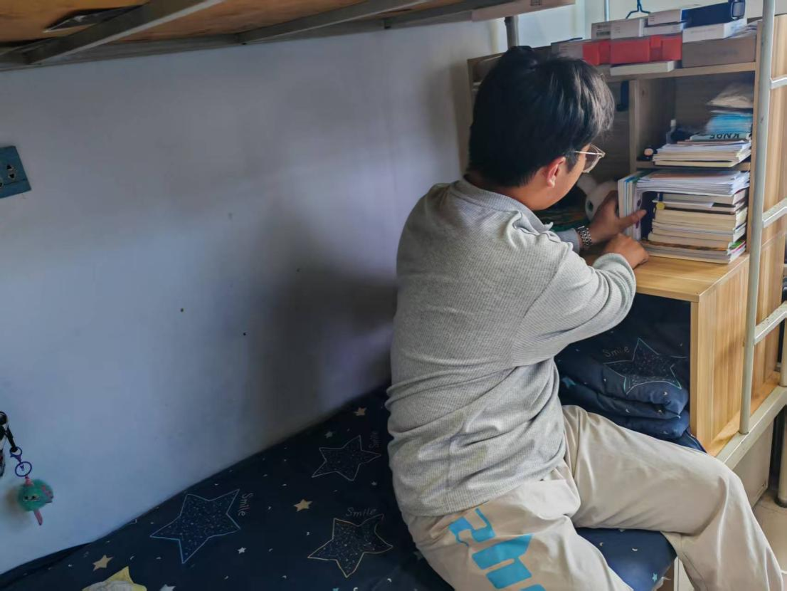 作为电子工程公司2023级员工干部,郑秦阳始终秉持“有序生活方能高效学习”的理念,争当电院文明学子,将宿舍个人区域打造成兼具创意与实用性的收纳空间。他以模块化思维对物品进行分类,利用纸箱子做收纳盒、床头架、床下收纳柜等工具,将书籍、衣物、文具等物品分层归置;针对狭小空间,巧妙采用垂直收纳法,通过收纳式鞋盒与折叠挂袋提升空间利用率,使整个区域既功能齐全又极具视觉美感,通过切身行动郑秦阳同学的内务成为了整理的示范样板,充分展现出了当代老员工对生活品质的追求与创新实践能力。