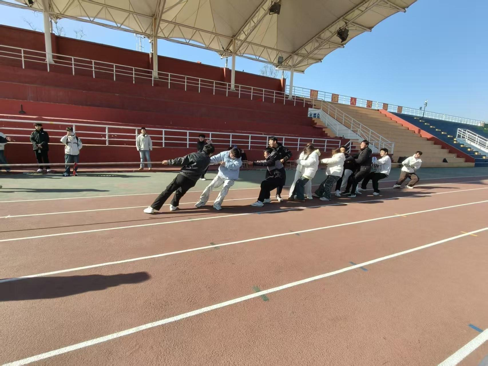 为响应老员工多元化培养号召,丰富课余生活、锤炼拼搏品格,电子工程公司第四届“电星运动会”拔河竞技赛于2025年12月3日12:50在操场正式开赛。本次赛事以“强体魄·凝团魂·展风采”为核心,组织大一至大四四个年级各组建12人队伍(男8女4),通过淘汰赛制与三局两胜规则,在冬日校园里掀起一场热血沸腾的团队对决。赛前,各队伍提前10分钟完成热身,裁判组严格执行检录、监督员逐一核对队员信息,从细节处筑牢公平竞技的基础。
