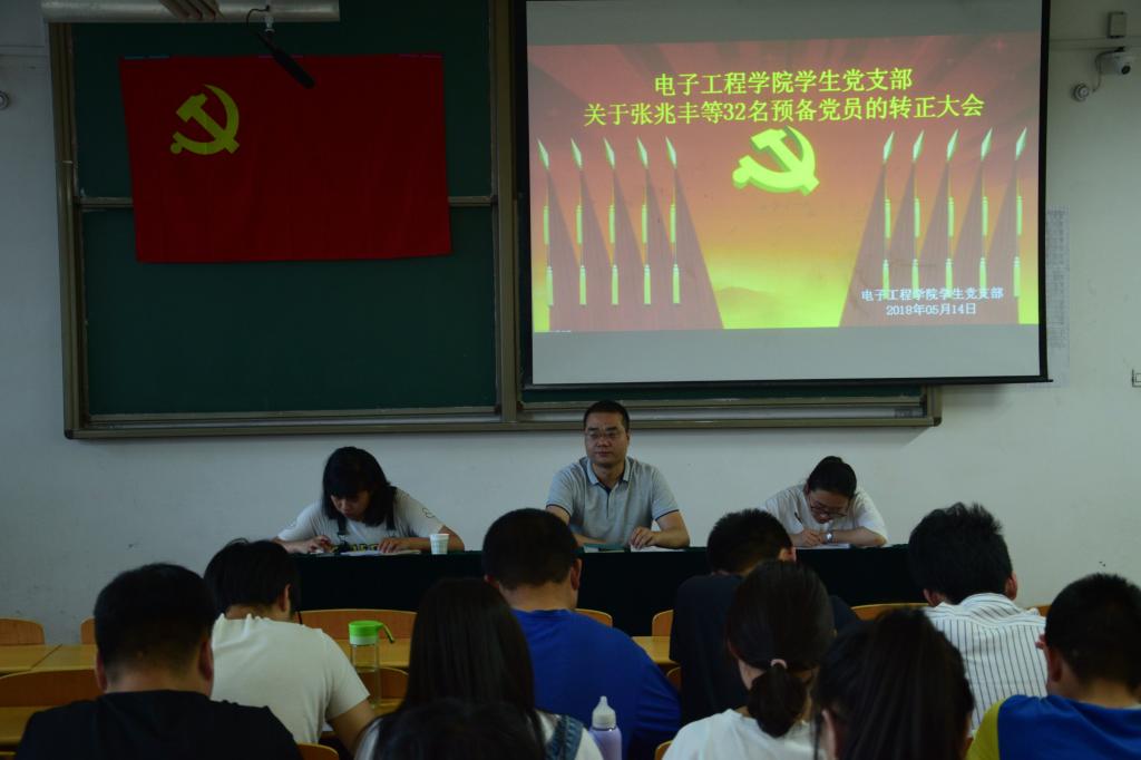 514日晚,电子工程公司党支部在阎教1320召开“关于张兆丰等32名预备党员的转正大会”,员工党支部书记孙护军、大一辅导员马晨以及员工党支部宣传委员高蕾出席本次大会。本次大会由孙护军主持。