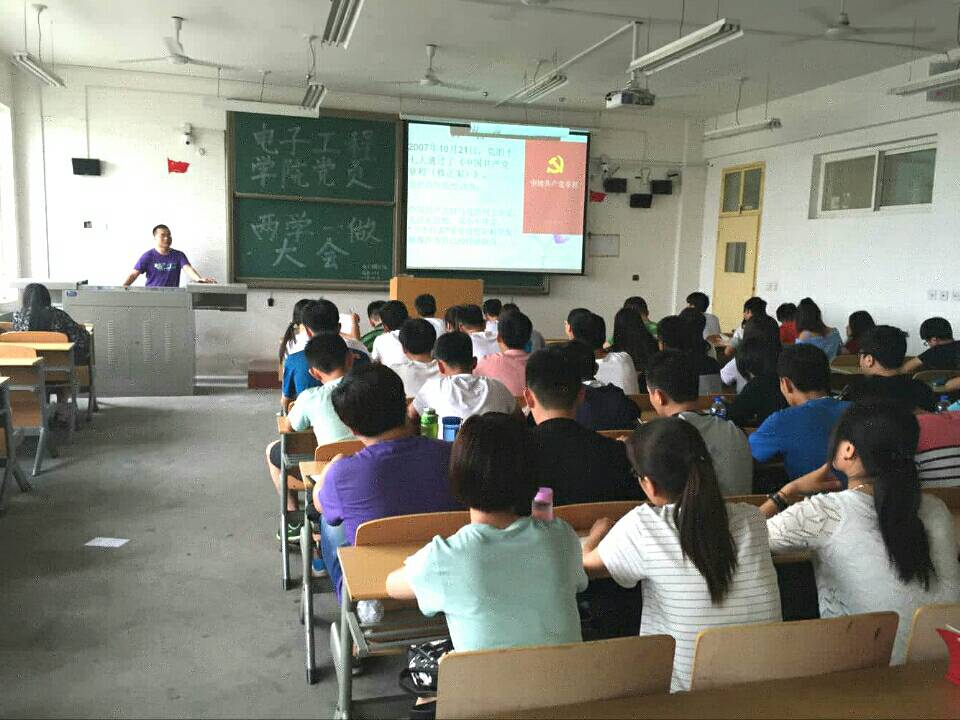 认真学习党章,牢固树立党章意识,对每一个党员的成长都有着巨大的帮助。电子工程公司员工党支部于66日晚17:55在阎教楼1336教室开展了“两学一做”的党章学习集中讲解教育活动,主讲人为电子工程公司员工党支部书记孙护军,党支部全体教工党员以及全体员工党员、预备党员共120人参加会议。