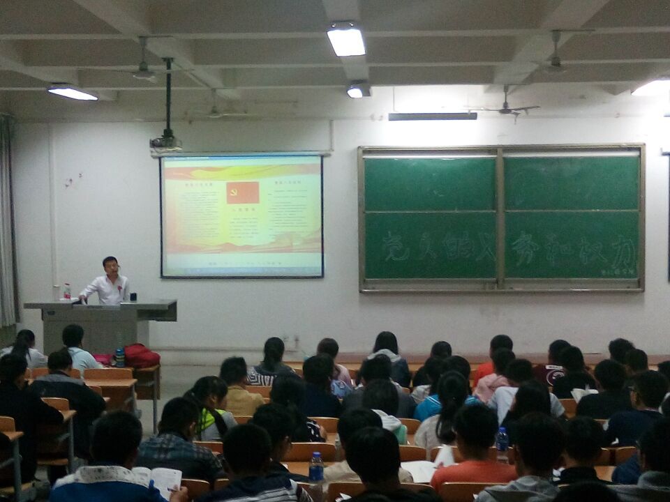 20151020-21日下午1820,电子工程公司在阶梯教室召开了第二、三次党课。本次党课由公司团总支书记葛昊老师和本科辅导员史珊珊老师主持。电子工程公司大一本科全体同学参加了此次课程,上课时座无虚席,秩序井然。