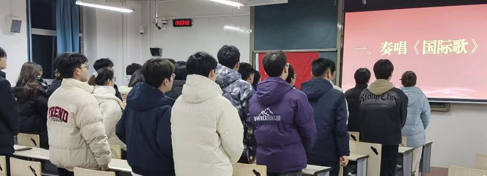 “起来,饥寒交迫的奴隶;起来,全世界受苦的人……激昂的《国际歌》响彻会场,全体人员肃立齐唱。铿锵歌声凝聚信仰力量,彰显共产党人追求真理的坚定信念,为庄重仪式拉开序幕。
