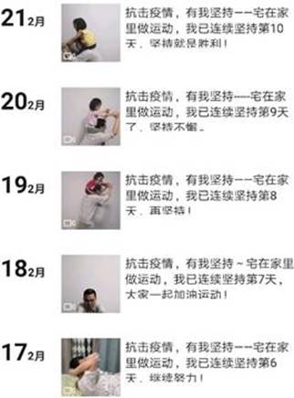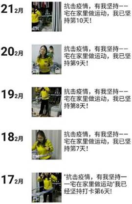为了响应公司工会“抗击疫情,有我坚持——宅在家里做运动”十天打卡活动,电子工程公司全院教职工纷纷积极参与到活动当中,继续在家“动起来”。