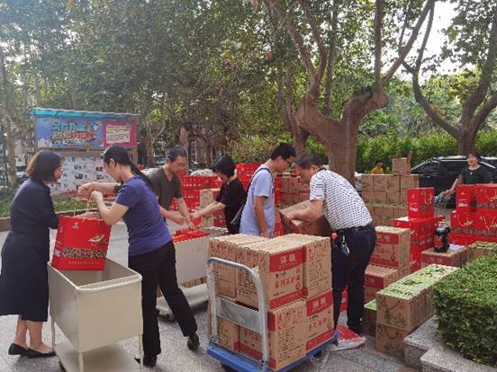 9月16日,公司2020年教职工教师节、中秋节、国庆节福利品发放工作在沣惠校区进行。全校教职工前来领取节日福利品,共话温馨,共庆佳节。
