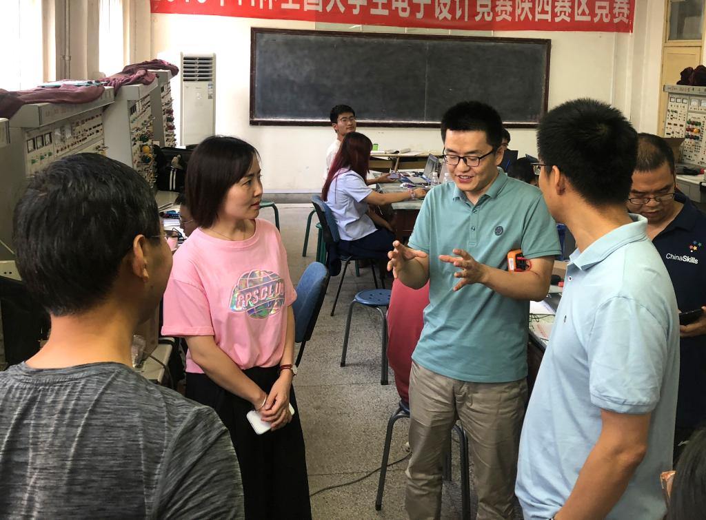 7月30日,2021年全国电子设计竞赛开赛在即。上午九时,电子工程公司经理毕杨,副经理肖海峰看望备战比赛的员工和指导教师,并与指导教师交谈,了解暑期培训过程和备战情况。指导教师汇报了培训中遇到的实际问题和处理方法,就培训内容和选题思路与公司领导深入交流。