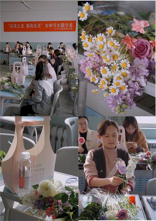 为庆祝第111个“三八”国际劳动妇女节,电子工程公司组织开展了以“以花之名,爱尚生活”为主题的庆祝活动。3月5日下午在沣惠校区主教学楼,举办了插花庆祝活动。在忙碌的教学科研工作之余,感受插花艺术的魅力,是对身心的放松,也是精神上的享受。