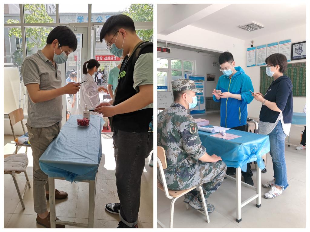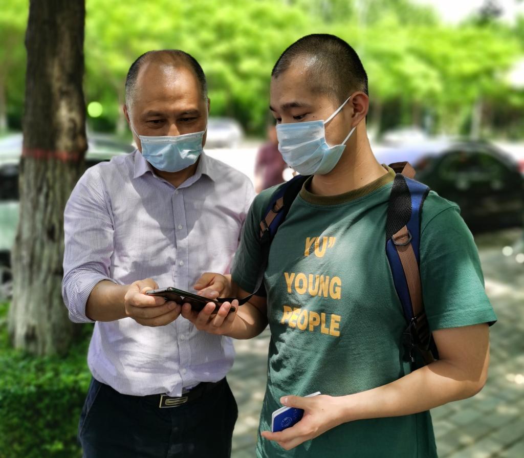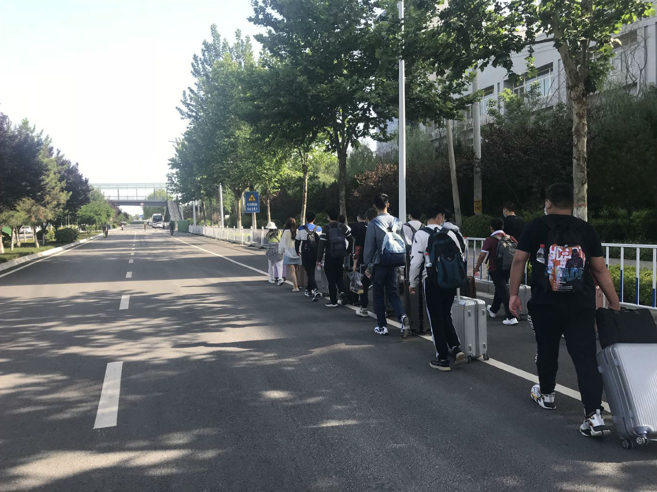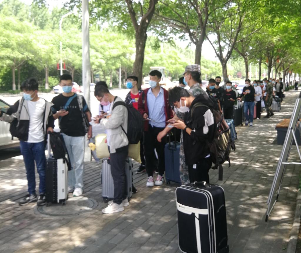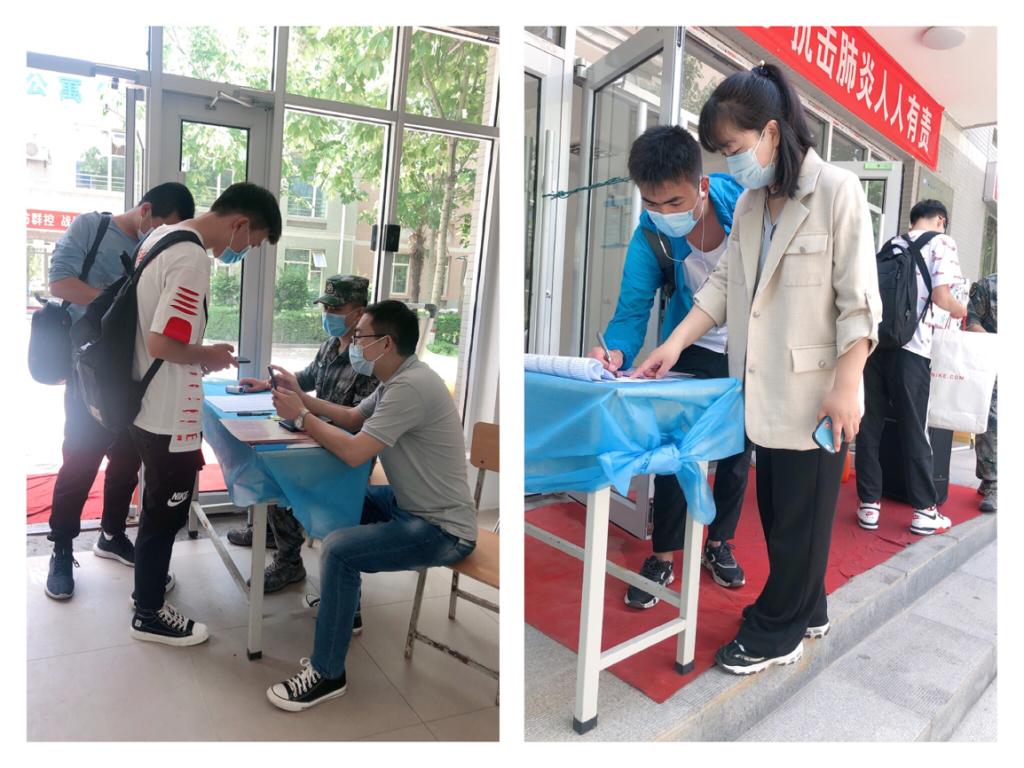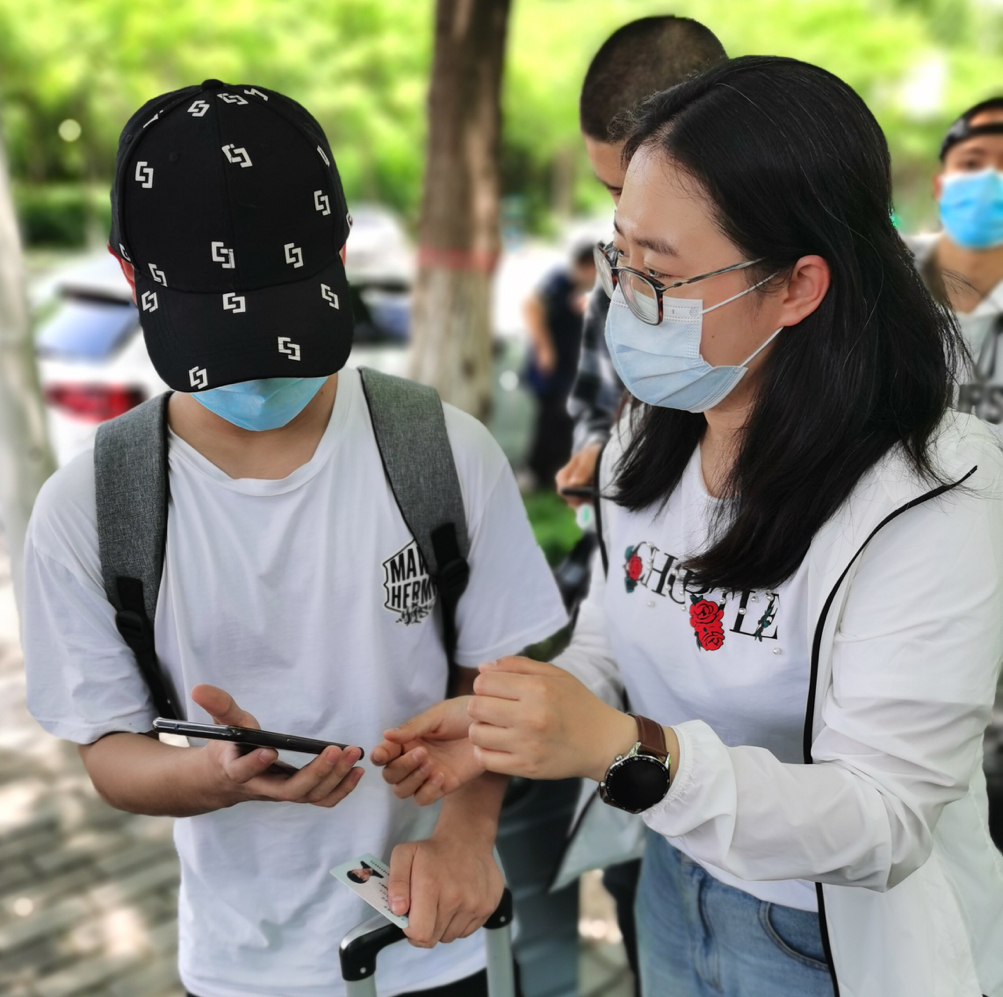 返校期间,按照返校接待方案,员工进入返校通道,辅导员老师有序引导员工完成身份核查、体温测量、智能测温系统测温、扫描西安市一码通进入校区。在公寓门口对行李箱、个人进行消毒,登记个人信息,扫描返校二维码,确保员工们返校安全、舒心。