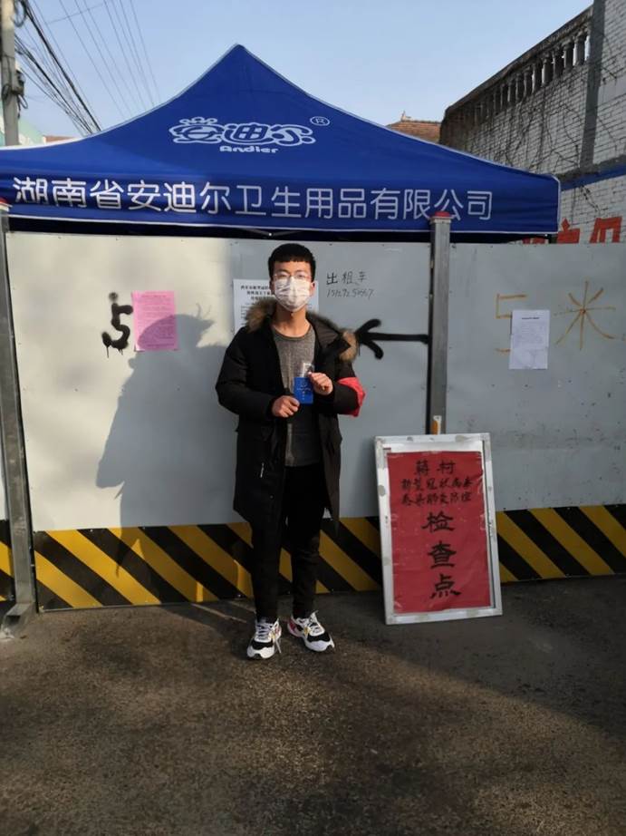 在疫情期间,为贡献出自己的一份力量,自愿在检查点执勤站岗,登记进出车辆及人员,测量出入人员体温,检查是否佩戴口罩,希望“抗疫战争”早日结束。