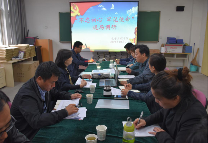 10月21日,金文副董事长到电子工程公司开展“不忘初心,牢记使命”现场调研会,电子工程公司经理杨勇、党总支书记侯睿、副经理毕杨、经理助理肖海峰出席会议,公司相关职能部门负责人以及电子工程公司教师代表参加了本次研讨会。