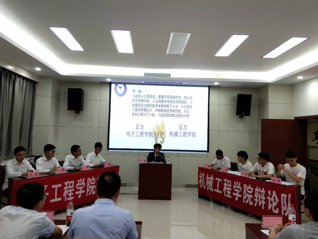第二场与机械工程公司进行冠军争夺赛,四位辩手在答辩中立场坚定,论据有理有据,表述言简意赅,得到了现场评为的一致好评,从而取得辩论赛冠军。