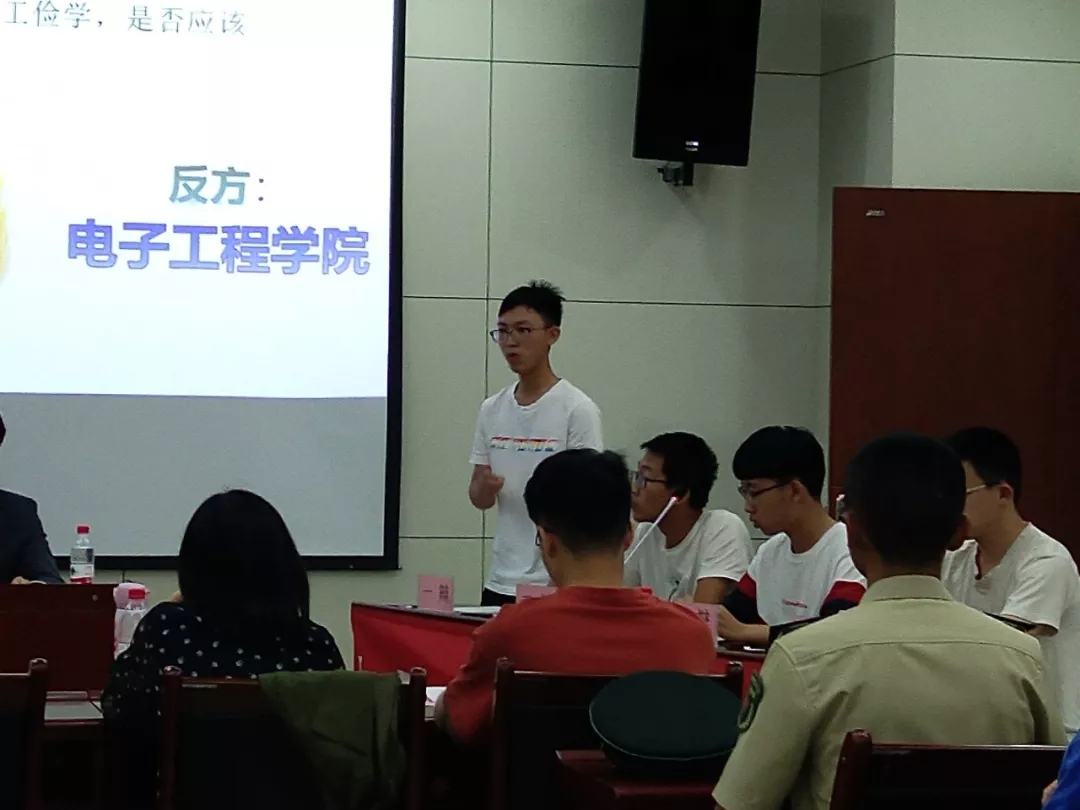 辩论赛开始前由主裁阐述了本次活动的规则与处罚办法。本次比赛有三个辩论主题。第一轮辩论主题为“受资助员工参与校内勤工俭学,是否应该额外发放工资”。公司作为反方参与了辩论。辩手们思维敏捷,观点鲜明、言简意赅、有理有据地引用国家资助相关政策来论证自己的观点,又将理论结合实践,用公司实际开展的实例来证明我方观点。