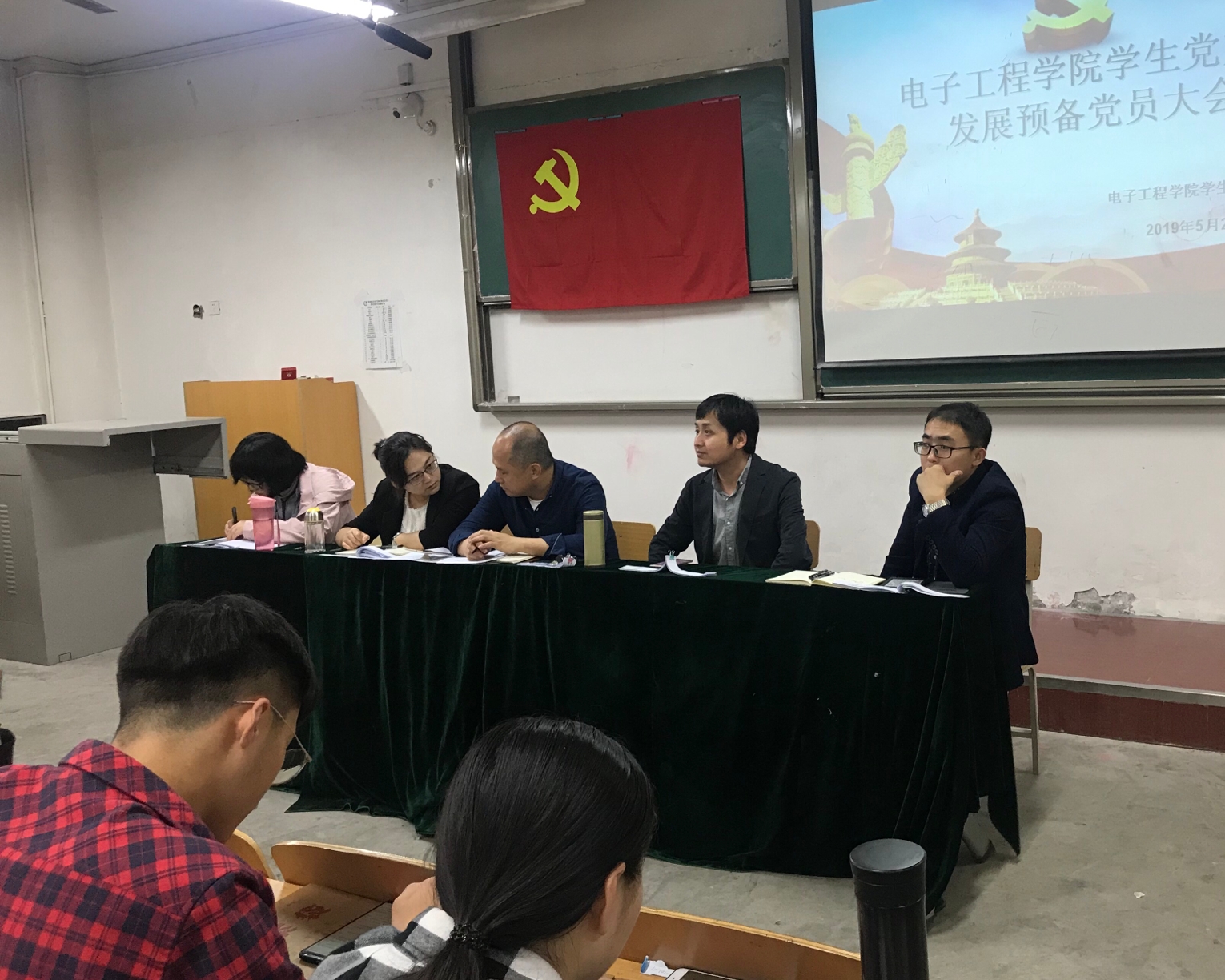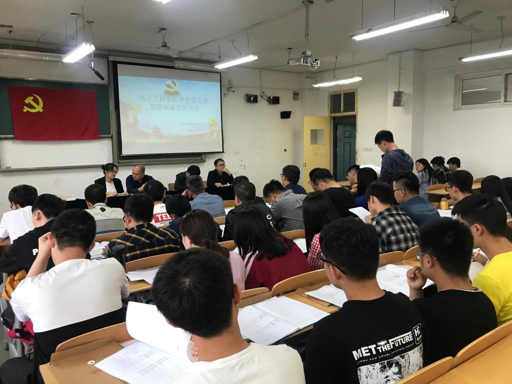 2019年5月28日下午四点,电子工程公司员工党支部在阎教1320组织召开了发展预备党员大会。员工党支部书记龙卓群、团总支书记肖静、大四辅导员史珊珊、大一辅导员赵嘉帅、大二辅导员庄思和任佳淼等47名发展对象参加了本次会议,会议由龙卓群主持。会议主要讨论了关于接收任佳淼等47名同志为预备党员的事。