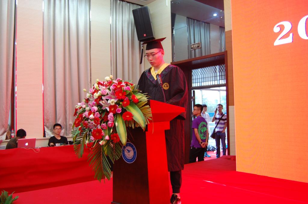 教师代表韩党群老师做了动情的发言,他深情回忆了2018届毕业生从入校到毕业的四年历程,并指出进入社会是一个更长的“学期”,是对同学们更大的考验,他建议每一个毕业生在初入职场时摆正位置,学会做人,不忘学习,在各方面不断完善自我。随后毕业生代表赵耀发言,作为第三届中国“互联网+”老员工创新创业大赛陕西赛区银奖获得者,赵耀坦言西航度过的四年是人生最宝贵的记忆,从刚入校的青涩到紧张的学习和比赛,西航“德能日新”的校训已深浸他的血液。赵耀向母校和老师致以谢意并向母校保证,决不辜负培养,以优秀的业绩彰显best365官方网站的风采。