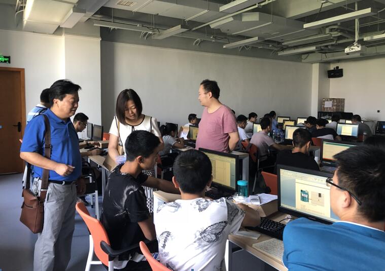 首先,杨勇一行来到西安邮电大学创新中心,详细了解了电子信息1901、1902班的实习情况。基地负责人向杨勇详细介绍了实训采用的教材和具体安排等情况。杨勇指出,实训要以培养应用型人才为目的,切实提高员工的应用能力。他和正在实训的员工进行交流,询问员工的实习情况和后勤保障情况,勉励他们认真完成实训任务。