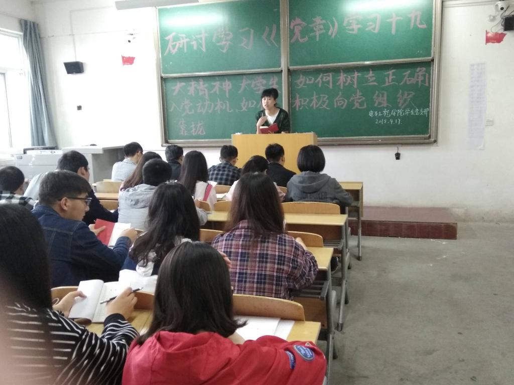4月17日晚,电子工程公司员工党支部在阎教1336召开了关于学习《党章》,学习十九大精神,以及端正入党动机的党课讨论会。电子工程公司19期积极分子全体参加讨论会,本次会议由大一辅导员马晨主持。