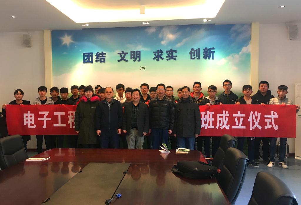 1月16日,电子工程公司“创新创业试点班”成立仪式在阎良校区顺利召开。电子工程公司经理杨勇,创新创业公司常务副经理刘安枕,创新创业试点班负责人韩党群出席仪式,试点班20名同学参加仪式。电子工程公司综合管理办公室主任龙卓群主持仪式。