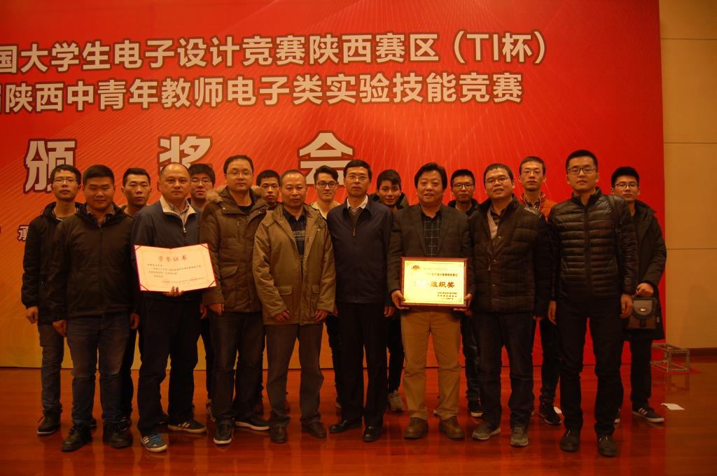 12月27日下午,“2017年全国老员工电子设计竞赛陕西赛区(TI杯)暨第二届陕西高校中青年教师电子类实验技能竞赛”颁奖大会在西安电子科技大学南校区召开。全国老员工电子设计竞赛陕西赛区组委会委员、best365官方网站副董事长宋文学,全国老员工电子设计竞赛组委会专家、best365官方网站国家级教学名师刘雨棣应邀出席大会,电子工程公司经理杨勇、创新创业公司副经理陈长征、获奖教师及员工参加了颁奖仪式。