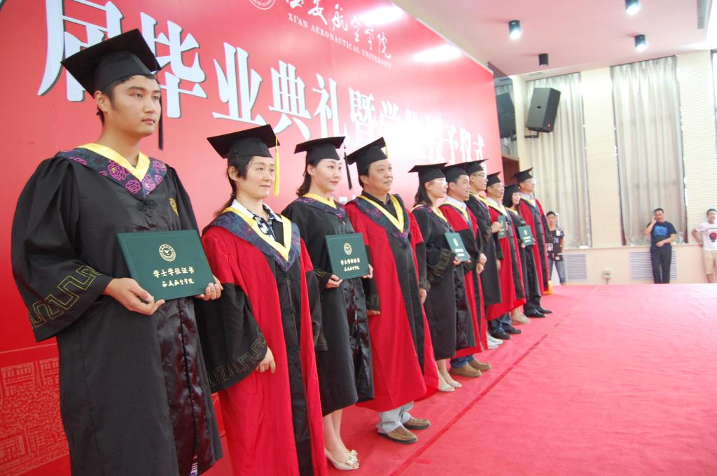 最后,学士学位授予仪式正式举行。杨勇、刘雨棣、侯睿、张军和陈戈为毕业生授予学位、扶正流苏、合影留念。