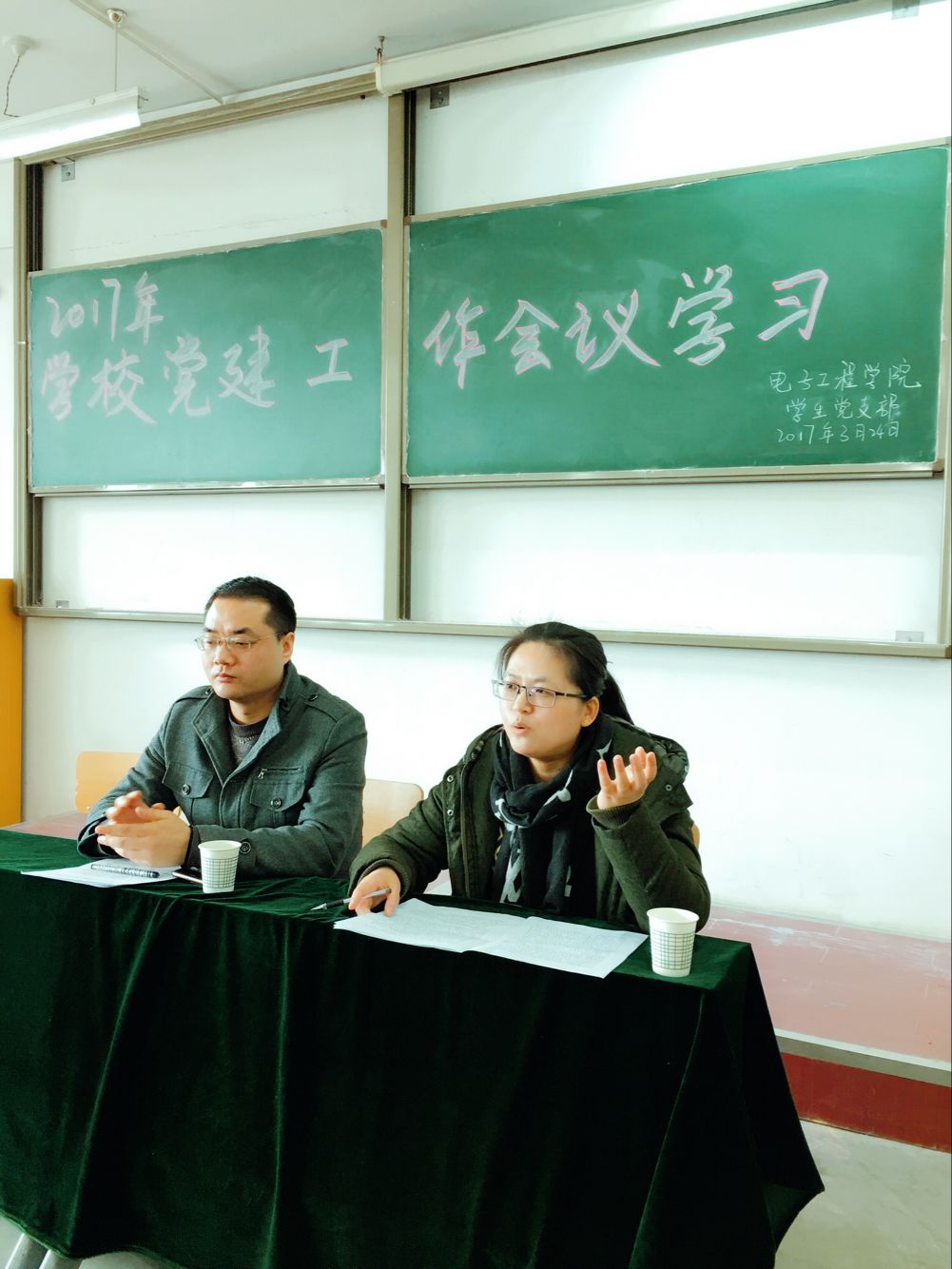 近日,电子工程公司员工党支部于阎教1320组织开展学习2017年公司党建工作会议精神。员工党支部书记孙护军,宣传委员高蕾,大二专科辅导员肖静以及本院全体党员参加了本次会议,会议由孙护军主持。