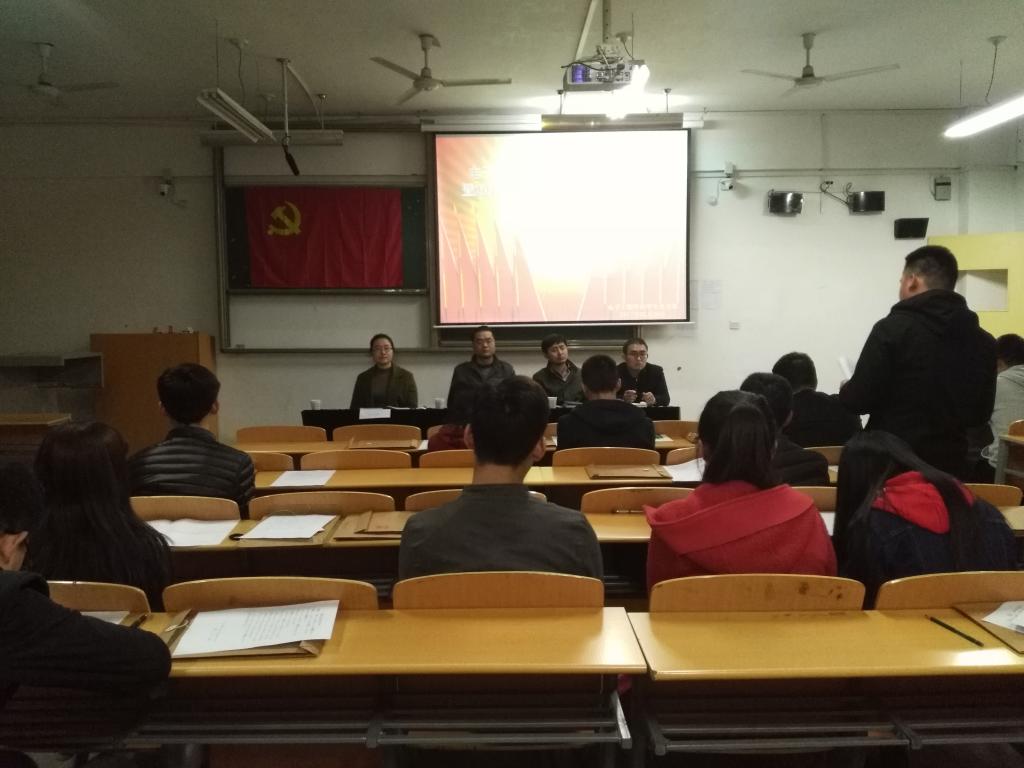 根据会议程序,支部书记孙护军对本次会议主旨和主题进行了申明和强调。随后12名发展对象对一年来个人在思想认识和理论学习、践行党员要求等方面进行了发言,并宣读了入党志愿书,每名培养人也对所培养的发展对象在考察期间的成长教育情况给出了意见;之后宣传委员高蕾郑重的向大会宣读了叶轩等12名同志的政审报告,12名发展对象政治历史清白,无犯罪等历史记录。经支部全体正式党员投票表决,一致同意接收叶轩等12位同学为中共预备党员。