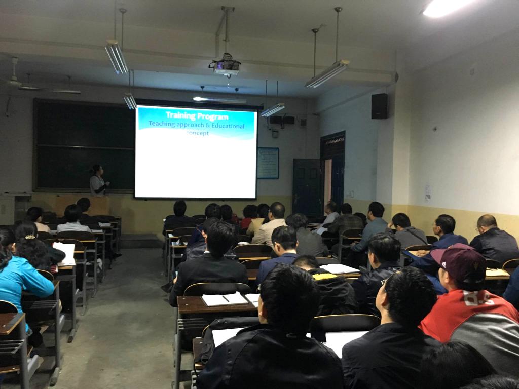 随后,访问团成员储海燕老师具体介绍了明尼苏达大学中国中心为本次培训安排的十五场专题讲座,内容涵盖美国高等教育体系介绍,通识教育的概念、背景及其与职业教育的结合,以员工为中心的课堂形式,课堂设置之情景因素与学习目标,有效学习小组,评分规则和以翻转课堂、慕课为代表的现代教育技术。