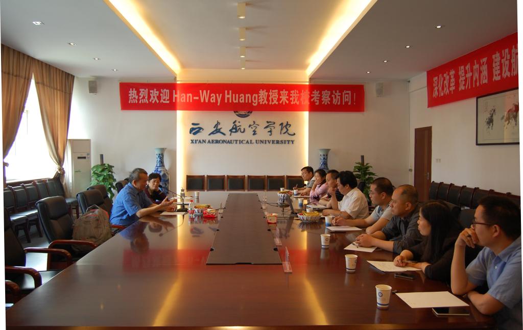 电子工程公司经理杨勇对Han-Way Huang教授来校参观指导表示热烈欢迎,他简要介绍了电子工程公司的基本情况、团队力量、教学科研和校企合作情况,详细介绍了公司与台达集团、瑞仪光电公司建立订单班,与莱盛亿源电力科技有限公司共建电气测试技术实验室,聘任中航工业623所研究员担任兼职教授以及派教师赴企业挂职培训等方面的工作。Han-Way Huang教授分享了自己在教学、立著和公司管理方面的经验。与会教师就课程设置、实验室建设和员工实践等问题与Han-Way Huang教授展开热烈讨论。