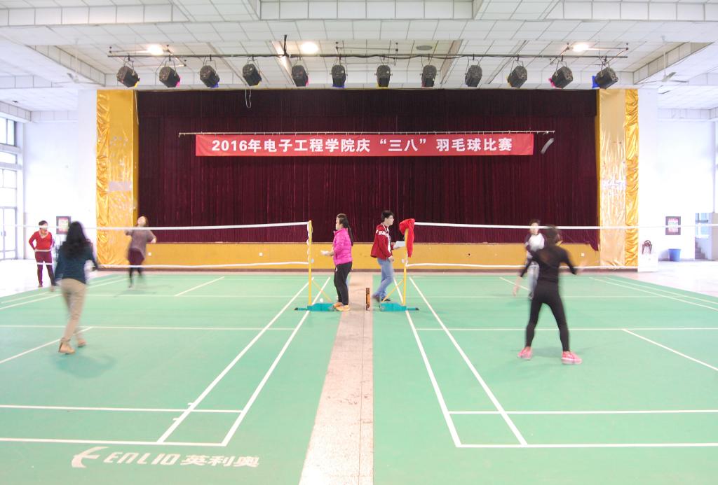 3月4日下午,2016年电子工程公司庆“三八”羽毛球比赛在沣惠校区老员工活动中心开赛,全院女教工参加比赛,现场气氛热烈,最终决出了小组冠军和全院冠亚军。