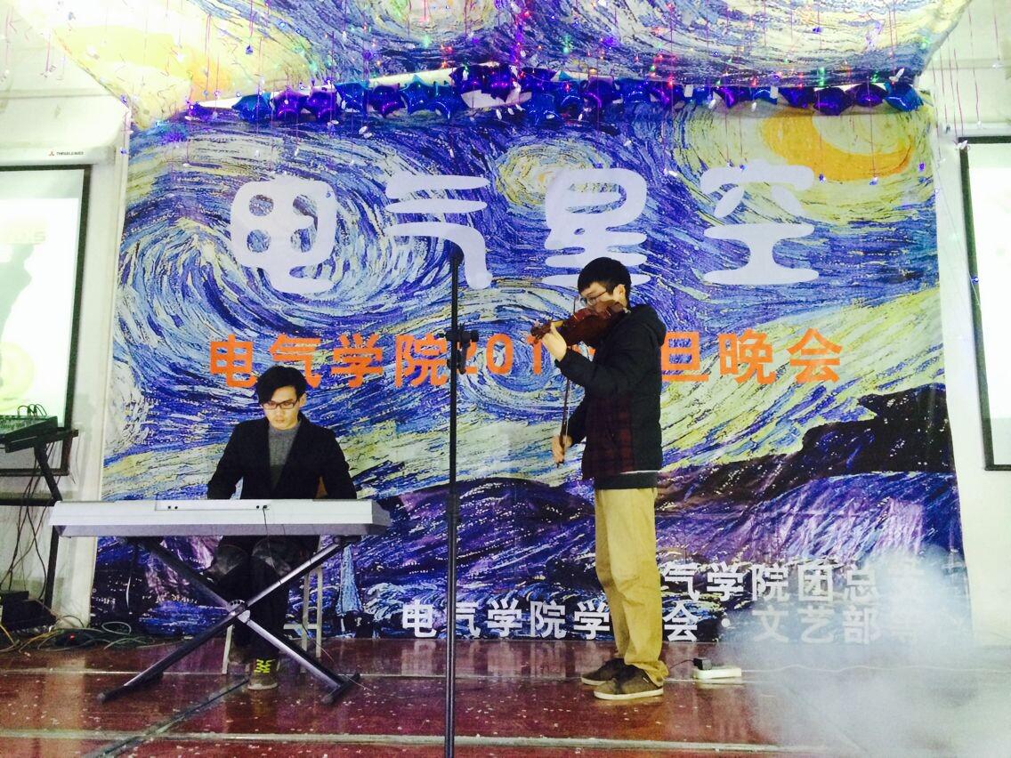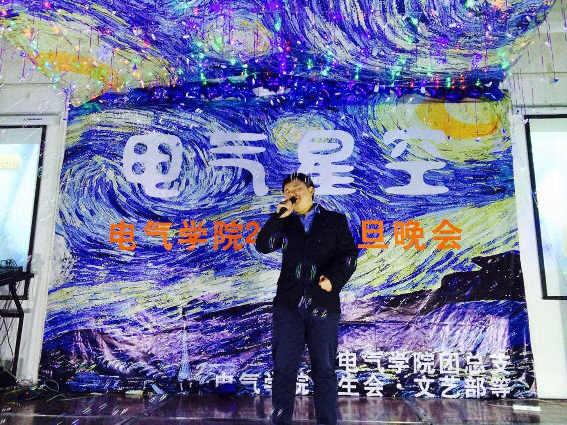 为欢度新春,喜迎新年,同时展示公司员工个人特长和员工干部的工作组织安排能力,由团总支与员工会联合主办的电气公司“电气星空”2015元旦晚会于2014年12月29日晚7点在阎良校区阶梯教室五火热举行。公司党总支副书记侯睿老师,以及兄弟院系、后勤集团、电气公司教研室、公司辅导员等多名老师出席了晚会,公司近200名员工代表凭票到场观看,共庆新年。