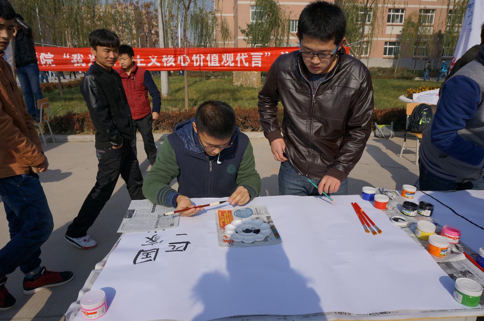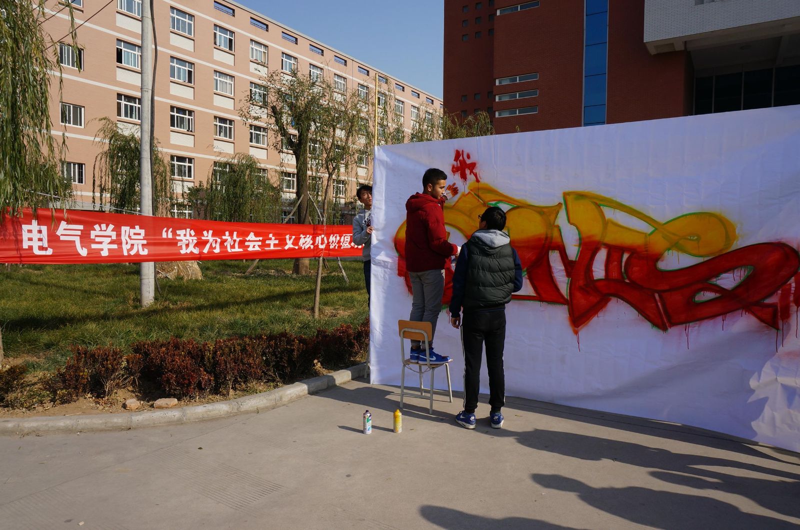 由公司团总支主办,公司团总支秘书部和员工会秘书部承办,院团总支宣传部和员工会宣传部、青协中队协办的“我为社会主义核心价值观代言”涂鸦大赛于12月2日中午12点在饭堂十字隆重开赛。本次活动是公司团总支为积极响应校团委号召,更好的弘扬社会主义核心价值观,让社会主义核心价值观精神发扬光大,而举行的为期20天的“我为社会主义核心价值观代言”系列活动中最重要的的一项活动。