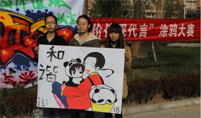 本次大赛采取了涂鸦这种无拘无束又极富表现性的创作方法,提高员工的参与积极性,并在这种高涨的参与热情中潜移默化的宣导了党十八大提出社会主义核心价值观24个字。使更多的同学融入到活动中,体会通过涂鸦让别人知道自己思想的喜悦,营造很好校园艺术气氛的同时让更多的西航人加入为社会主义核心价值观代言的队伍,更让社会主义核心价值观始终萦绕在公司的上空,构建社会主义的路还在继续,我们携手共进!