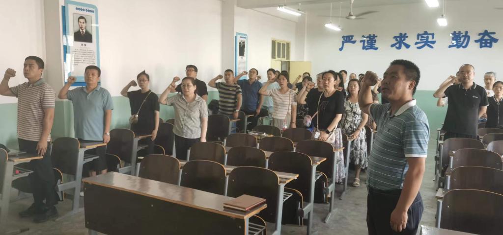 一、宣誓活动。党总支书记李中带领全体教师进行宣誓,以铮铮誓言表达为党育人、为国育才、躬耕教坛、强国有我的决心。